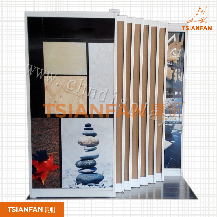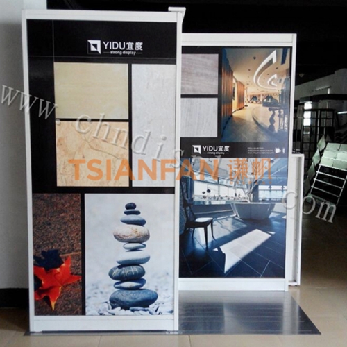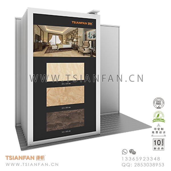 謙帆可以根據(jù)產(chǎn)品特點(diǎn),設(shè)計(jì)與之匹配的瓷磚推拉展示架,瓷磚斜拉柜,再加上具有創(chuàng)意的LOGO標(biāo)牌,使產(chǎn)品醒目的展現(xiàn)在公眾面前,從而加大對(duì)產(chǎn)品的宣傳廣告作用