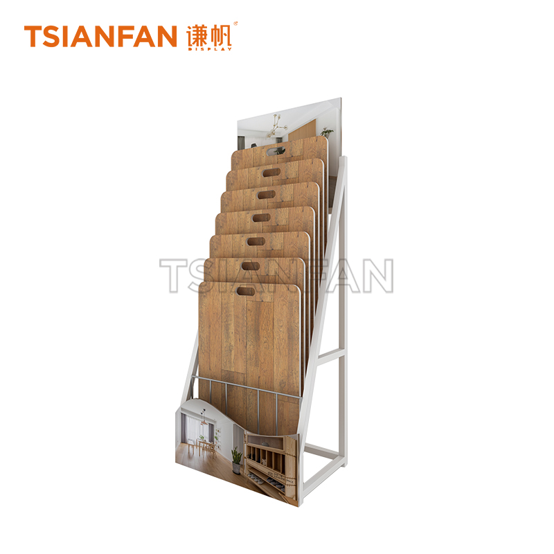 謙帆可以根據(jù)產(chǎn)品特點,設計與之匹配的產(chǎn)品促銷木地板樣品架,木地板架子,階梯式木地板展架,再加上具有創(chuàng)意的LOGO標牌,使產(chǎn)品醒目的展現(xiàn)在公眾面前,從而加大對產(chǎn)品的宣傳廣告作用。